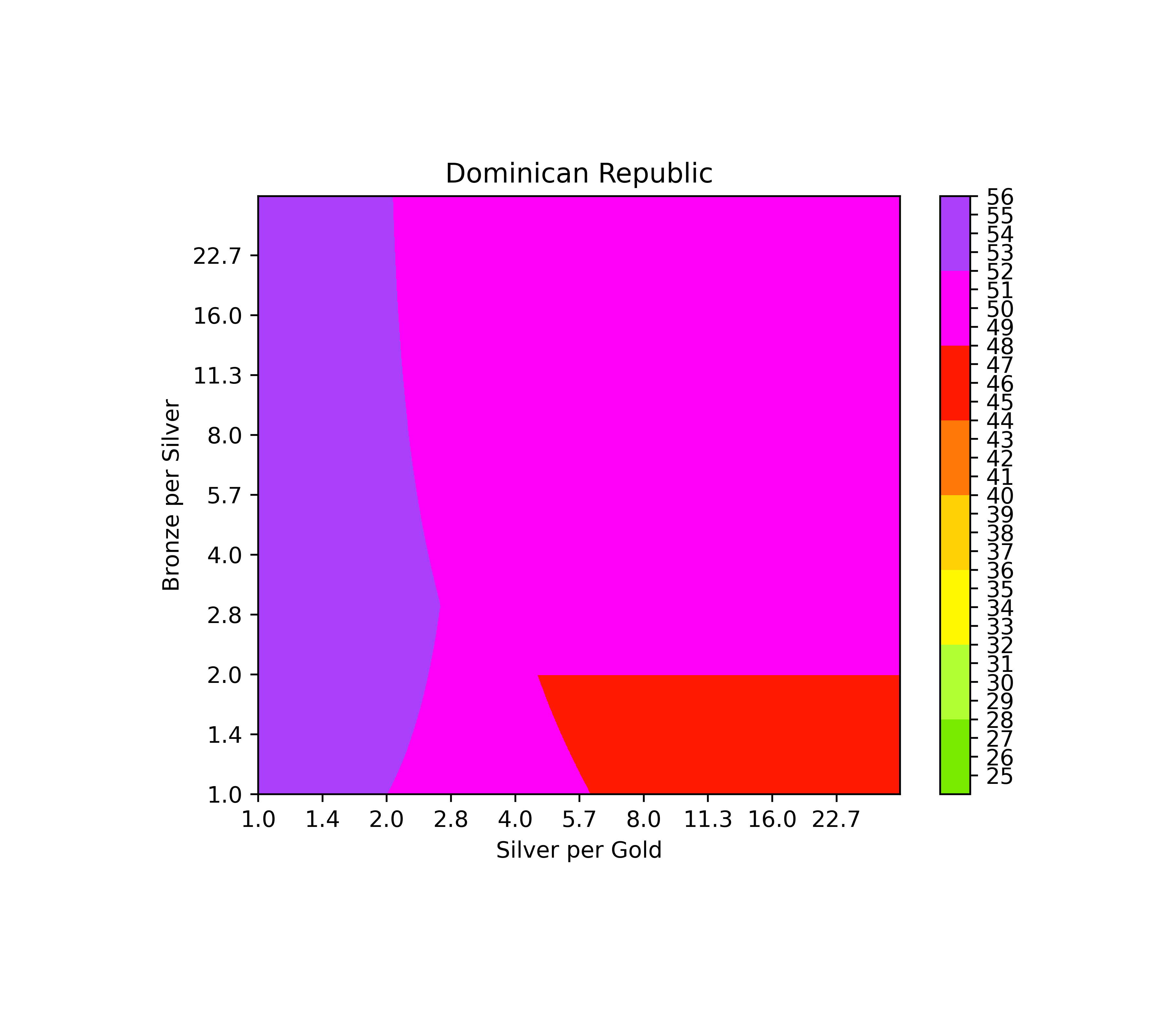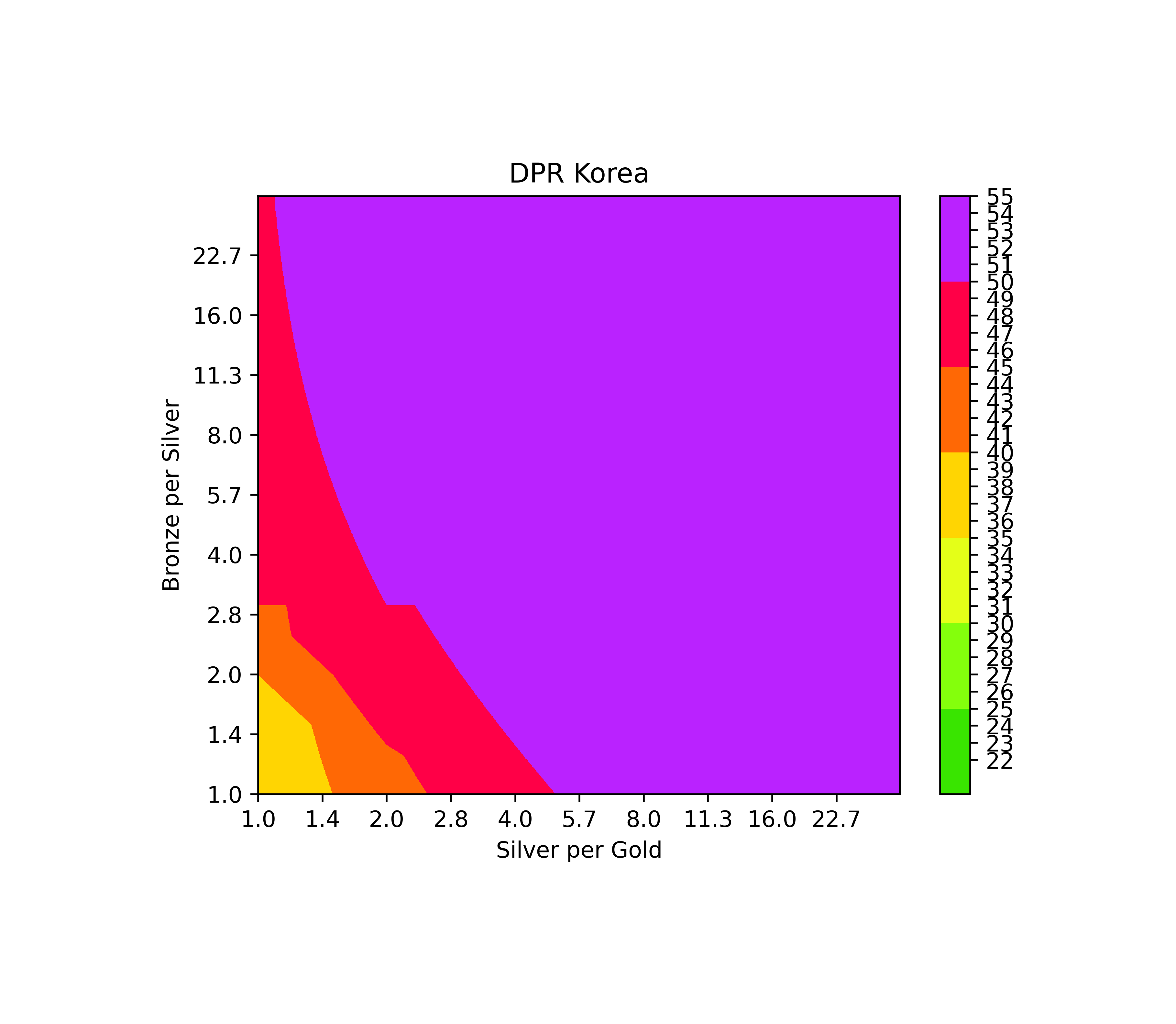 (for scraping medal counts, crudely right now using Selenium becuase it was easy to do) and render.py to make the plotsTo clarify, points for each country are calculated by the following formula: