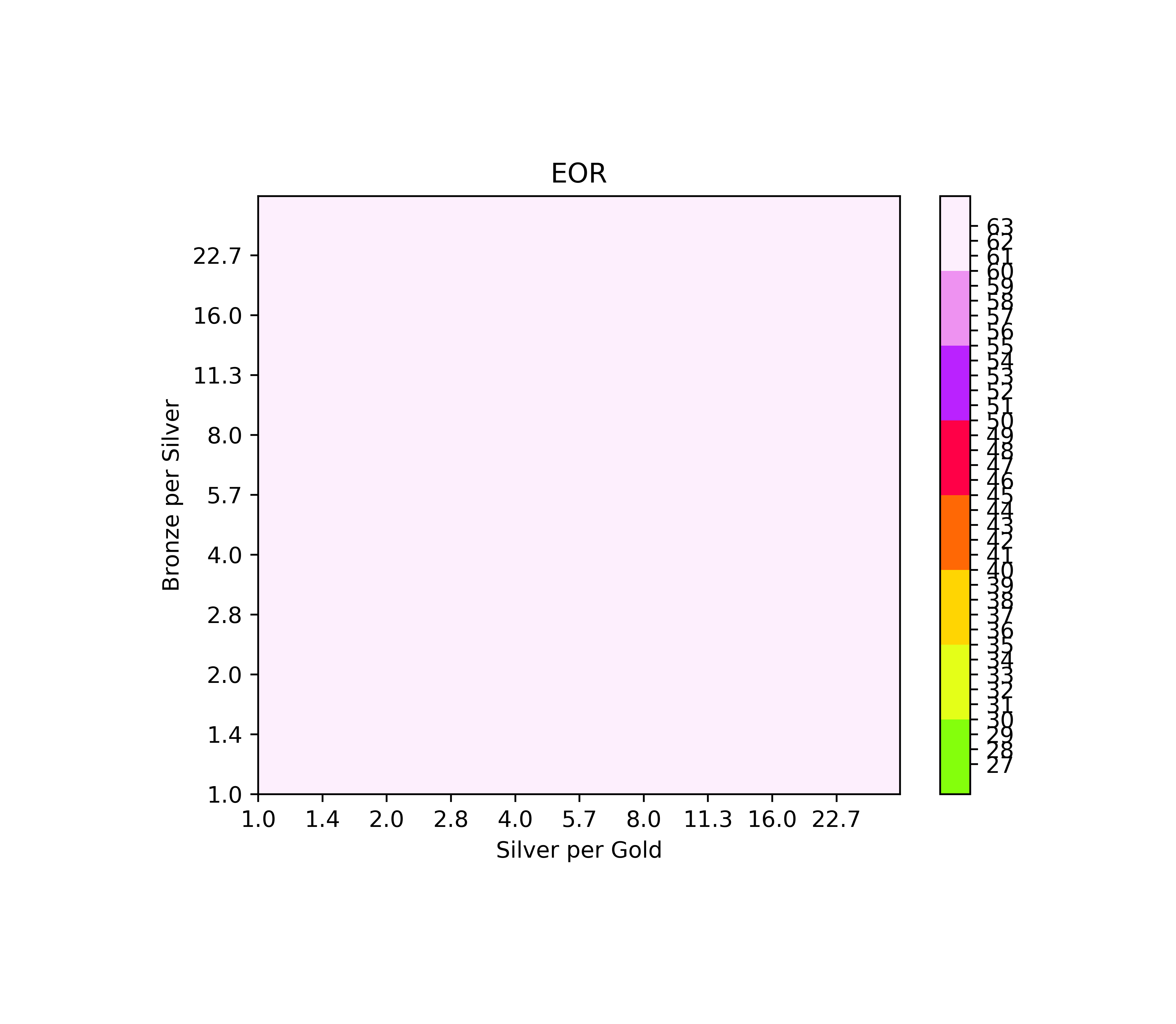This is the 1 chart to look at to answer 'who is winning' for a given gold->silver (and equal silver->bronze) multipler